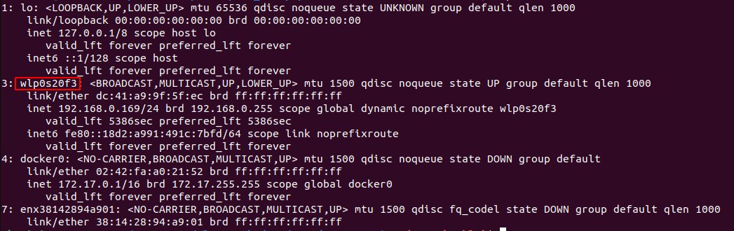 Once logged in, find the name of your Wi-Fi interface by calling ip a