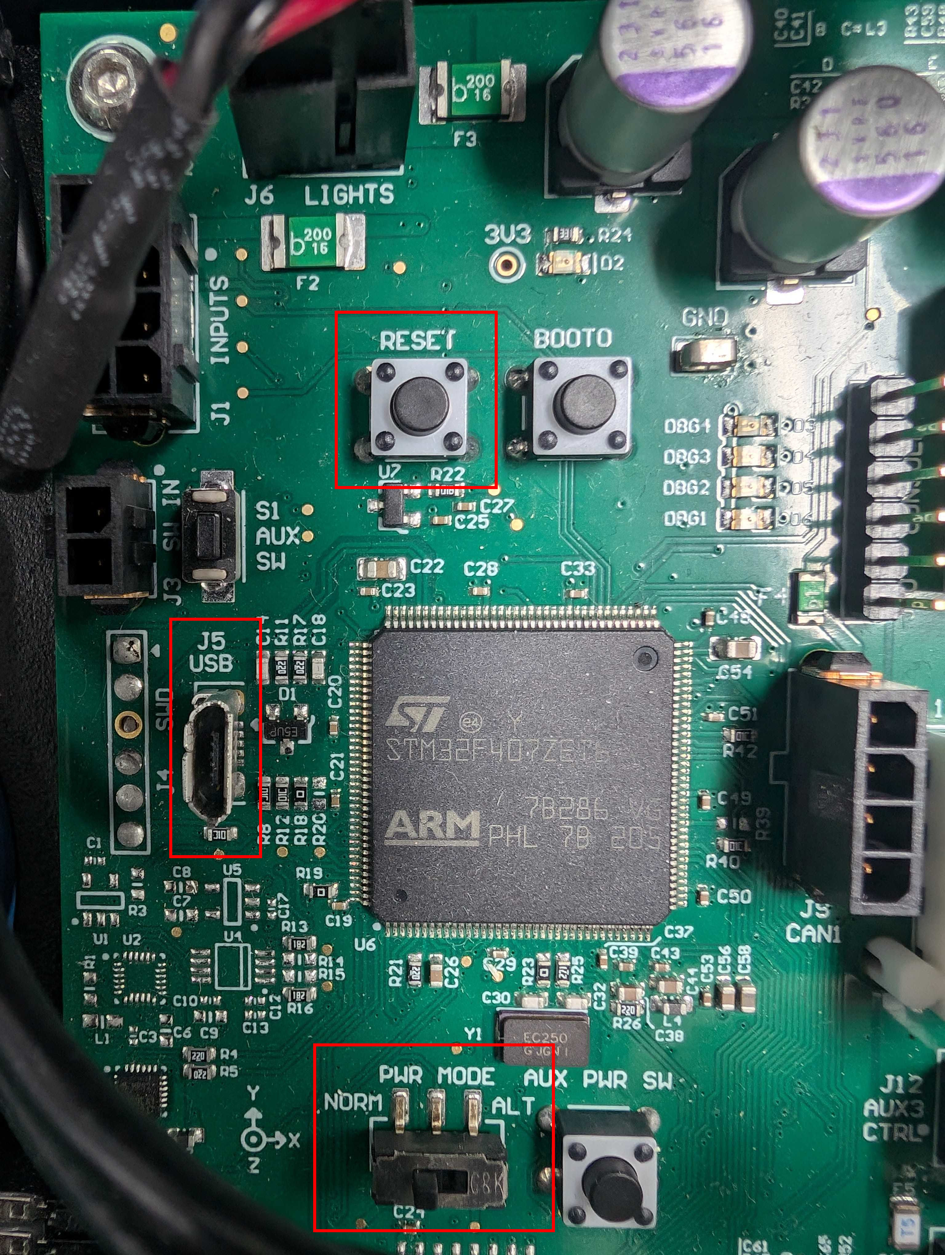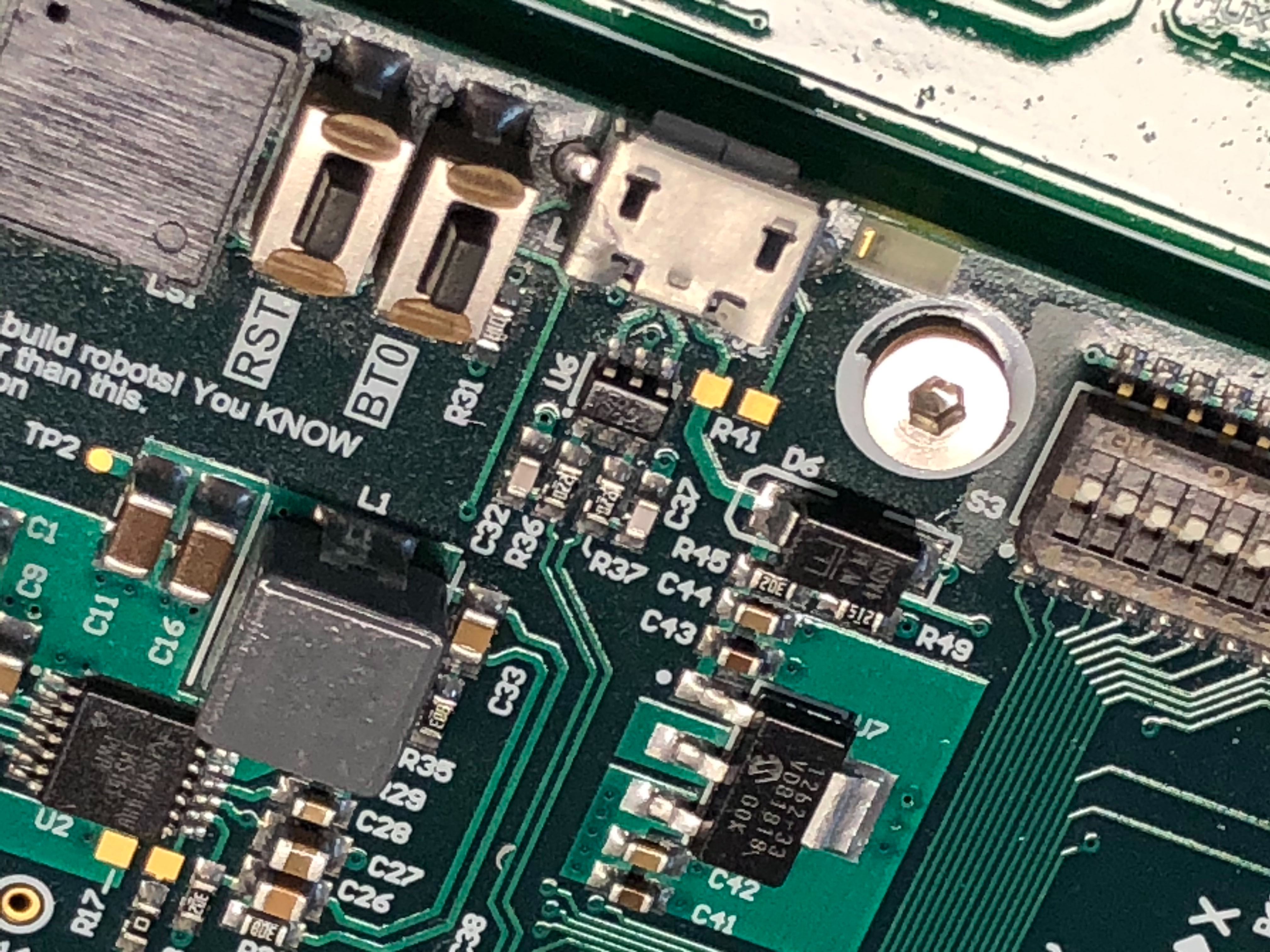 Before flashing firmware, place your robot up on blocks or disengage the drivetrain. Firmware loading does not usually result in unintended motion, but it is safest when off the ground.