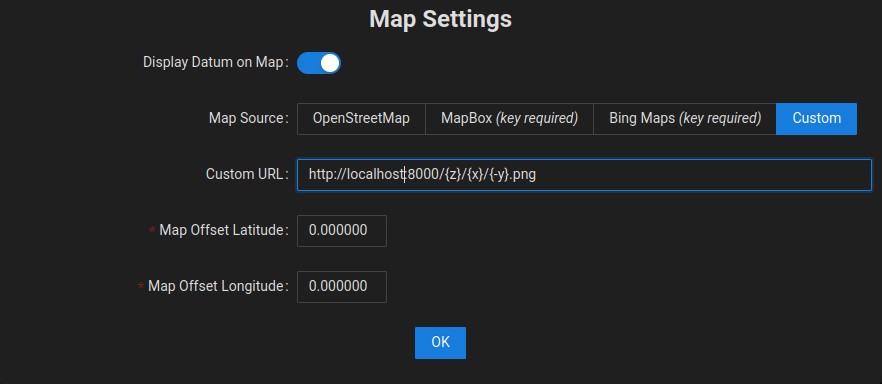 values. This will need to be adapted to match the directory structure of your map tile images. - Click Ok.