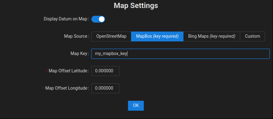 - Copy the MapBox key from Step 1 into the Map Key field.