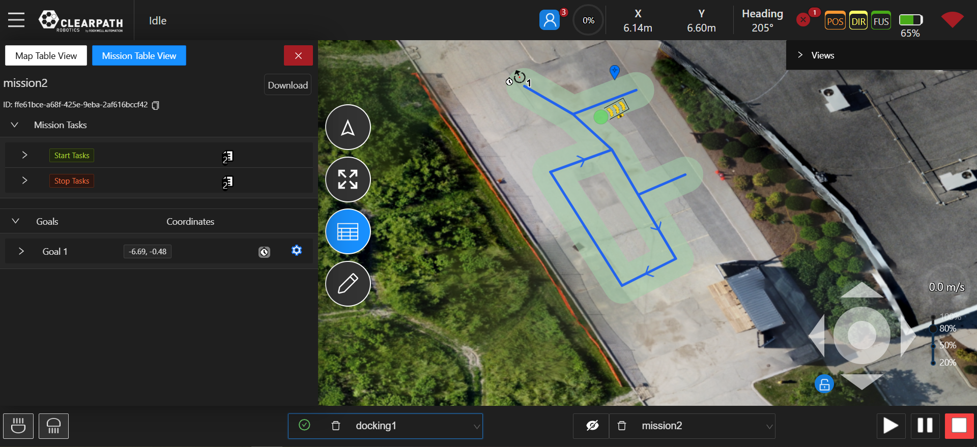 - Build missions containing sets of paths, with optional task execution on each path; tasks can be standard tasks (eg. save camera image) or user provided functions