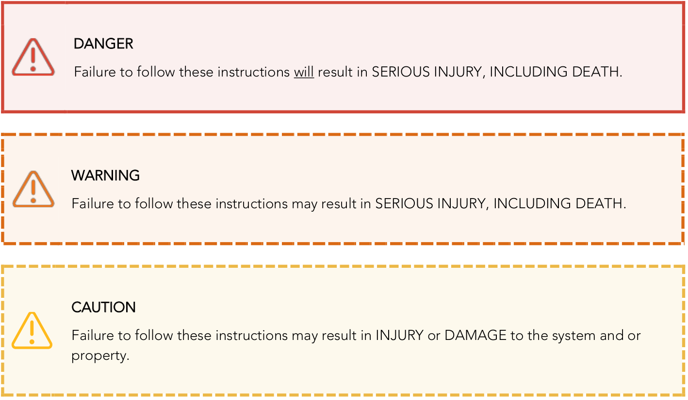 For Clearpath Robotics hardware and software, the risk level is captured using the following types of labels.