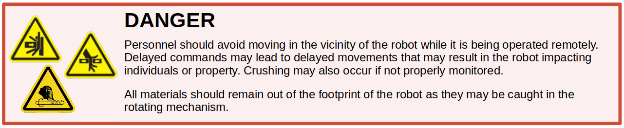 Ensure that you have read Safety and are aware of possible hazards when using this product as well as the safety methods that can be used to stop the moving UGV.