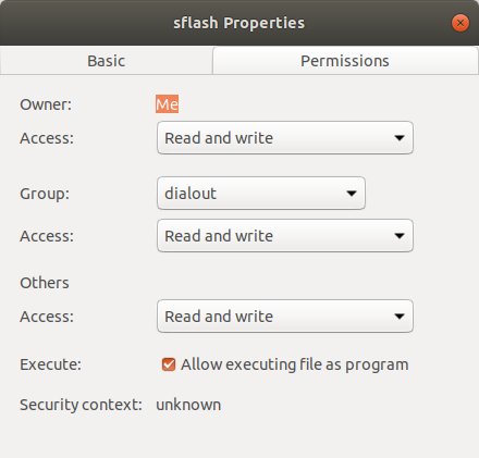 Alternatively; you can add execute permissions to sflash using a terminal. Navigate to the file through a terminal, and running: