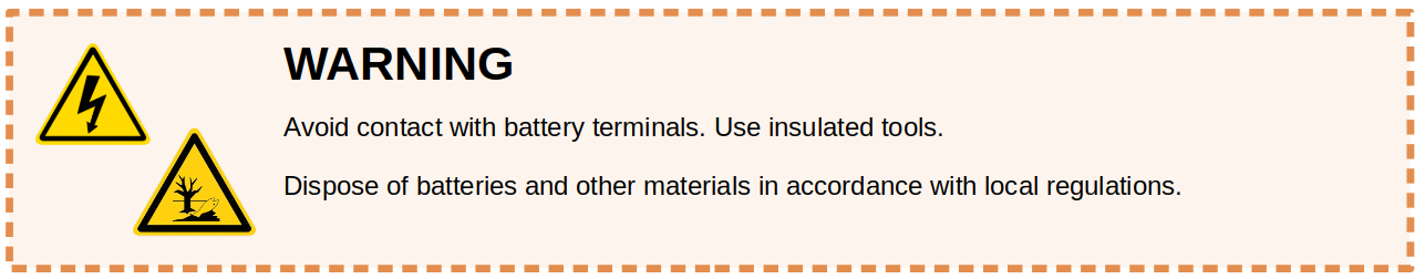 All printed circuit board assemblies, wiring harnesses and other electronics components such as sensors, computers, human-machine interface components, lights and motors should be treated as "e-waste" and disposed of in accordance with local regulations. Lithium-ion batteries should be treated as hazardous goods and disposed of in accordance with local battery disposal regulations.