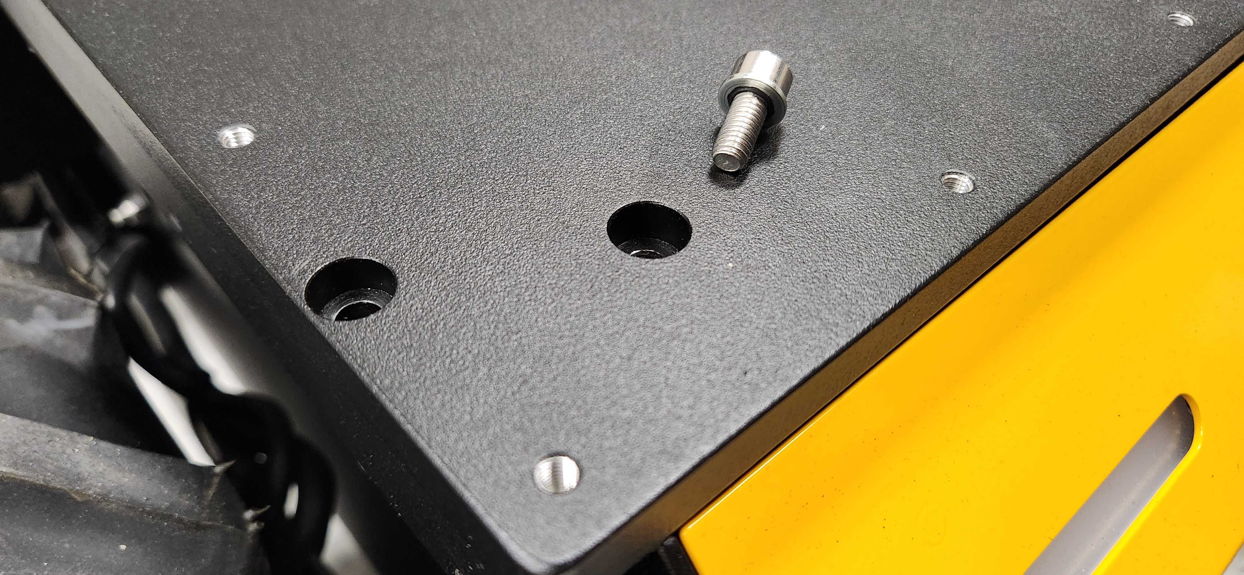 Put the Top Plate back in place and finger tighten the 7 screws. Note that the screw with the sealing washer goes in the inner location, and the remaining 6 screws are installed around the perimeter. Tighten all screws to 3 N·m.