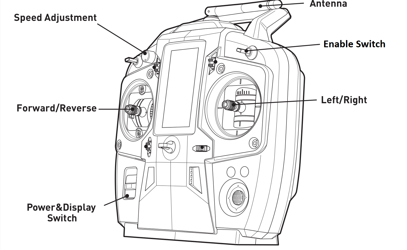The speed adjustment knob should be turned initially all the way to the left while familiarizing yourself with the transmitter and slowly increasing it to get it moving.